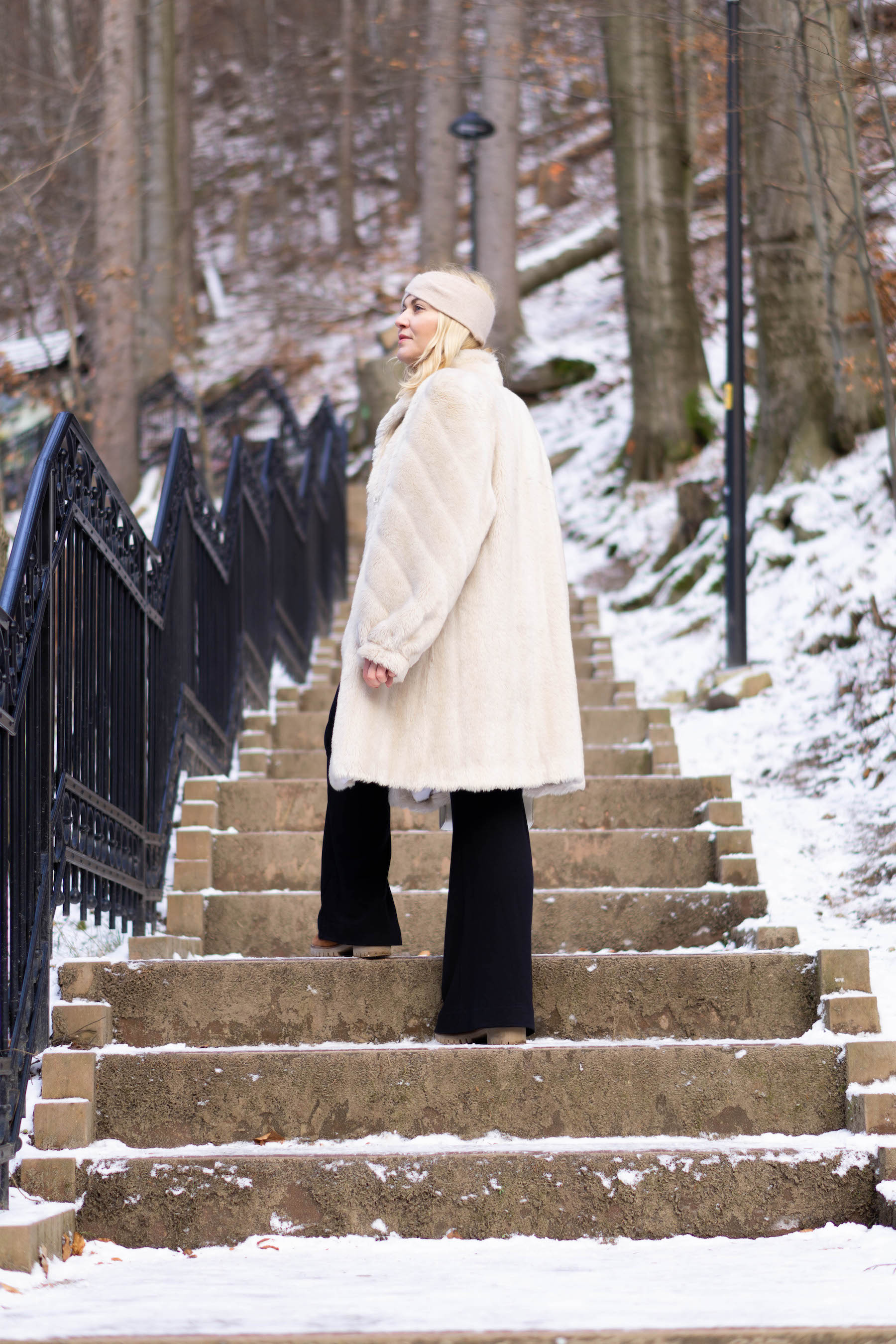 To był 01 lutego1995 roku. Moja Mama obchodziła swoje 38 urodziny, a Tata w prezencie kupił jej wymarzone, w kolorze kremowym, sztuczne futro, które minionej gwiazdki Mama postanowiła mi podarować 🙂 Futro, które ma dokładnie 25 lat i niesamowitą historię, ma teraz w mojej garderobie swoje specjalne miejsce. Myślę, że niejednej kuzynce, która ogląda dzisiejsze zdjęcia łzy napłynęły do oczu, ponieważ każda panna młoda w mojej rodzinie, która wychodziła za mąż w okresie zimowym zakładała owe futro do ślubu, w tym również moja siostra. Nie jestem w stanie policzyć, ile to (już moje) futro widziało łez szczęścia i wzruszeń. Ma dla mnie ogromną wartość sentymentalną, tym bardziej, że mojego Taty już z nami nie ma od wielu lat.